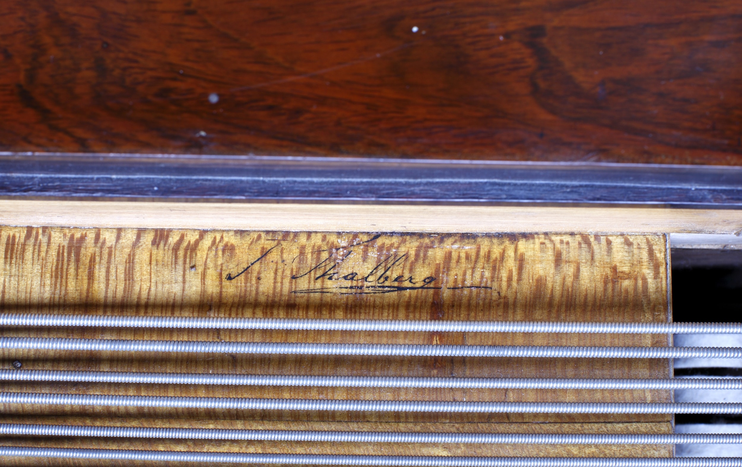 Sigismond Thalberg signed this instrument on 18th June 1845 when he chose it from the Erard warehouse in Paris for Lady Scott Douglas in London, who was presumably a pupil. Thalberg was one of the most celebrated virtuosi of the 19th century. The Erard workshops in London and Paris had operated in tandem since the 1790s and maintained minor differences of piano design in the respective capitals.